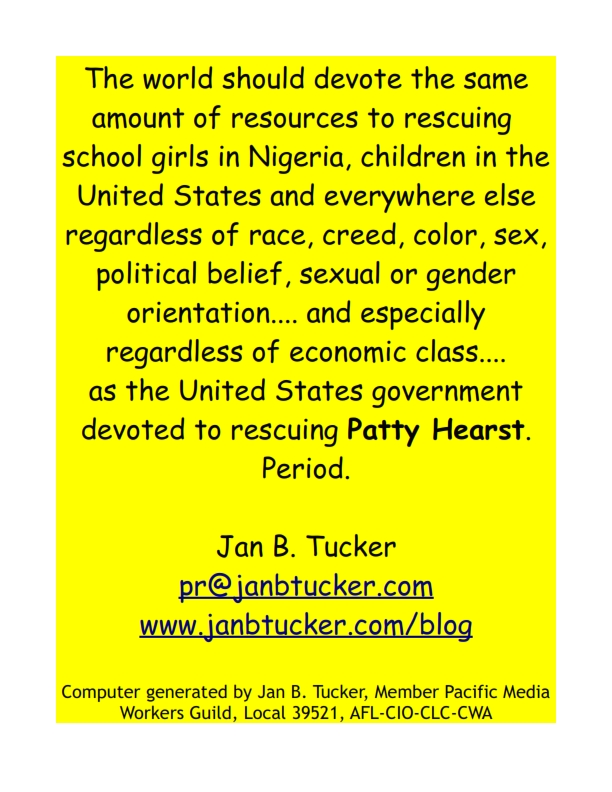 This entry was posted in Ideas & Opinions, Uncategorized and tagged Jan B. Tucker, Local 39521, Nigeria, Pacific Media Workers Guild, Patty Hearst. Bookmark the permalink.