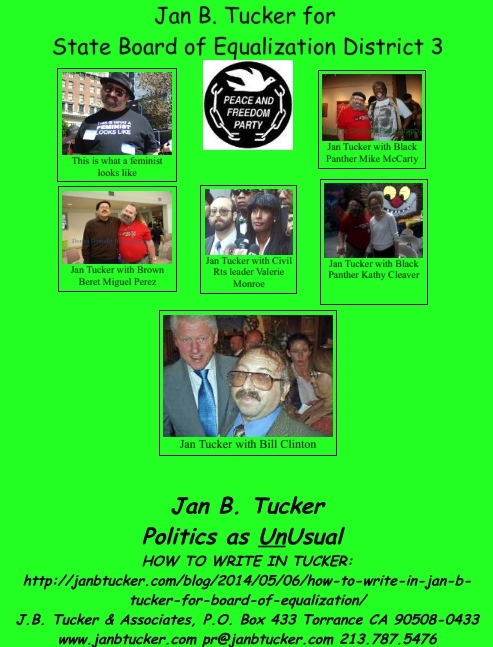 This entry was posted in Anecdotes & Adventures, Ideas & Opinions and tagged Bill Clinton, Black Panthers, Board of Equalization, Brown Berets, Jan B. Tucker, Kathy Cleaver, Michael McCarty, Peace & Freedom Party, Valerie Monroe. Bookmark the permalink.